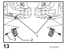 To install the hook, insert it into a groove in the tool housing on either side and then secure it with a screw. To remove, loosen the screw and then take it out.