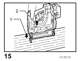 - For continuous nailing, pull the trigger first and then place the contact element against the workpiece. For the next actuation, you do not need to release the trigger.