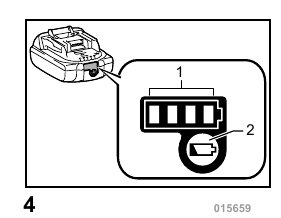 When the remaining battery capacity gets low, the indicator blinks. By further use, the tool stops and the indicator lights up about 60 seconds. In this situation, charge the battery cartridge.