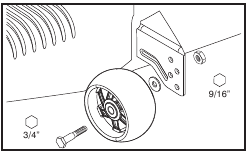 A socket wrench set will make assembly easier. Standard wrench sizes are listed.