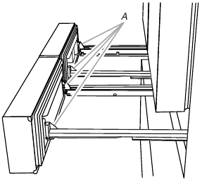 So that the closers feature will operate properly, the doors must be removed only when open to a 90° angle to the front of the cabinet. If one or both doors were not at a 90° angle when removed, the bottom door hinge must be reset.