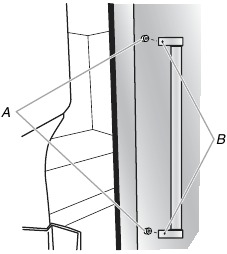 - Holding the left-hand door at a 90° angle to the front of the cabinet, set the door onto the bottom hinge pin.