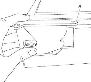 - Using a Phillips screwdriver, remove the cover from the top hinge.