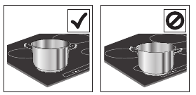 Always use the cooking zone that best corresponds to the minimum diameter of the bottom of the pot.