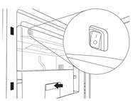 - Starting with the glide bracket closest to the vertical gap, press and hold the release lever up. With your other hand, lift the door clip from the drawer glide bracket.