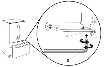 NOTE: Having someone push against the top of the refrigerator takes some weight off the leveling screws. This makes it easier to turn the screws.