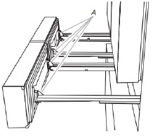 - Loosen the four screws attaching the drawer glides to the drawer front as shown below.