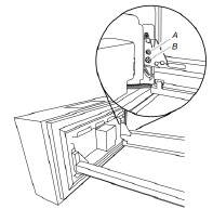 - Open the freezer drawer. Use a 1/4" hex driver to turn both brake feet clockwise the same amount. This will raise the front of the refrigerator. It may take several turns to allow the doors to close easier.