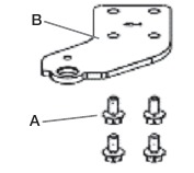 - With the wrench, remove the screws (A) fastening the bottom hinge (B) to the Refrigerator cabinet and set aside. There are four screws total.