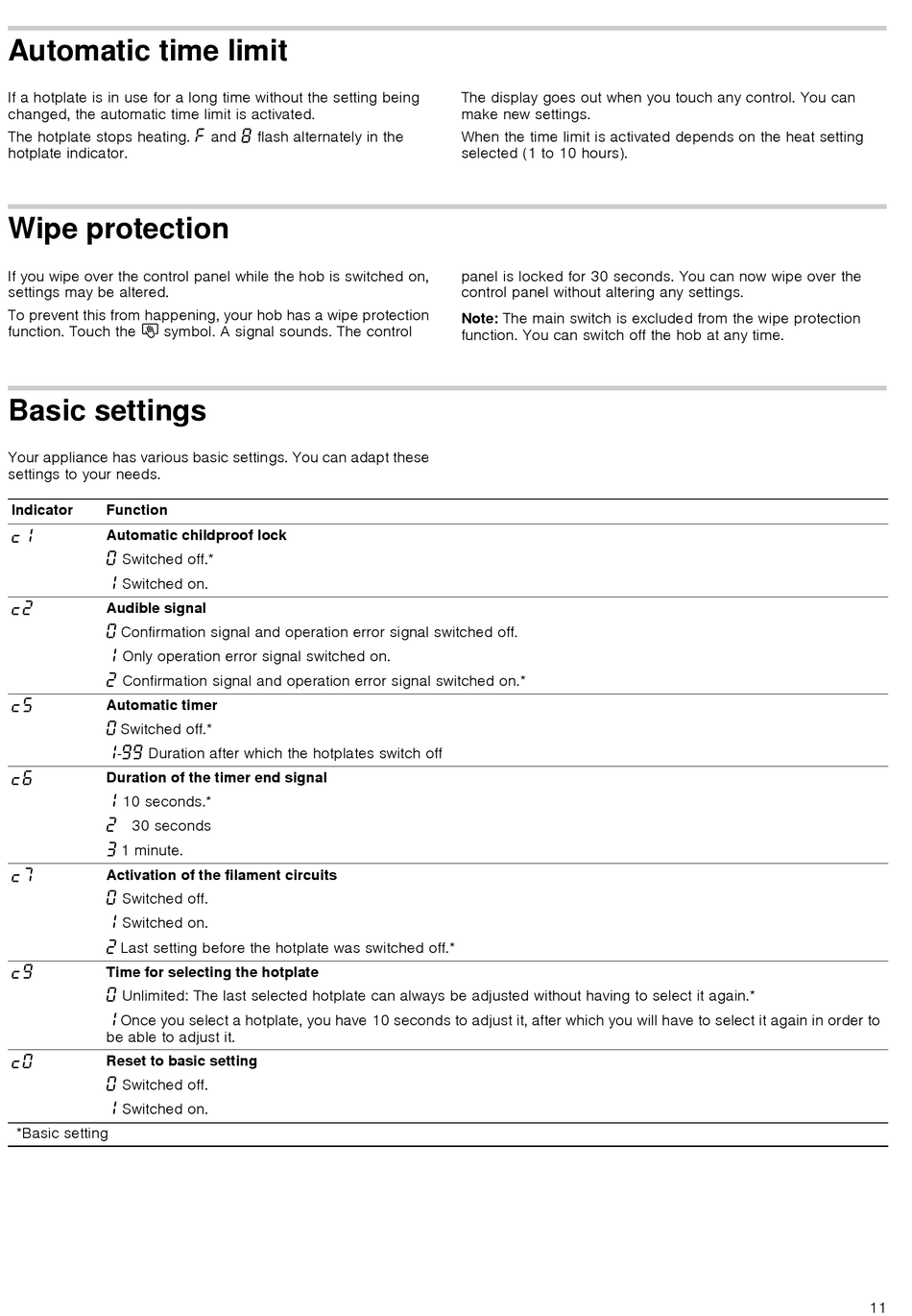 To prevent this from happening, your hob has a wipe protection