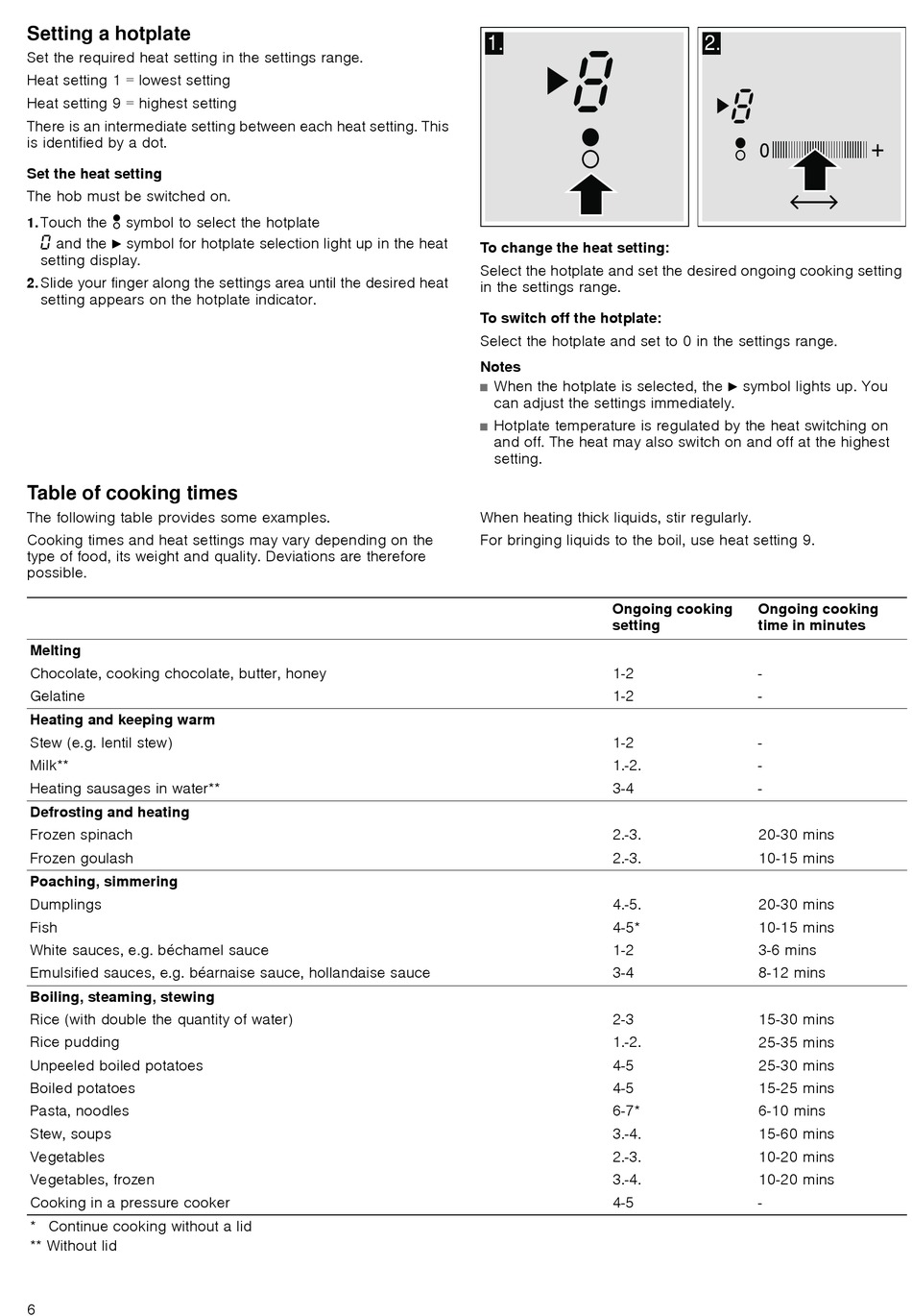 For bringing liquids to the boil, use heat setting 9.