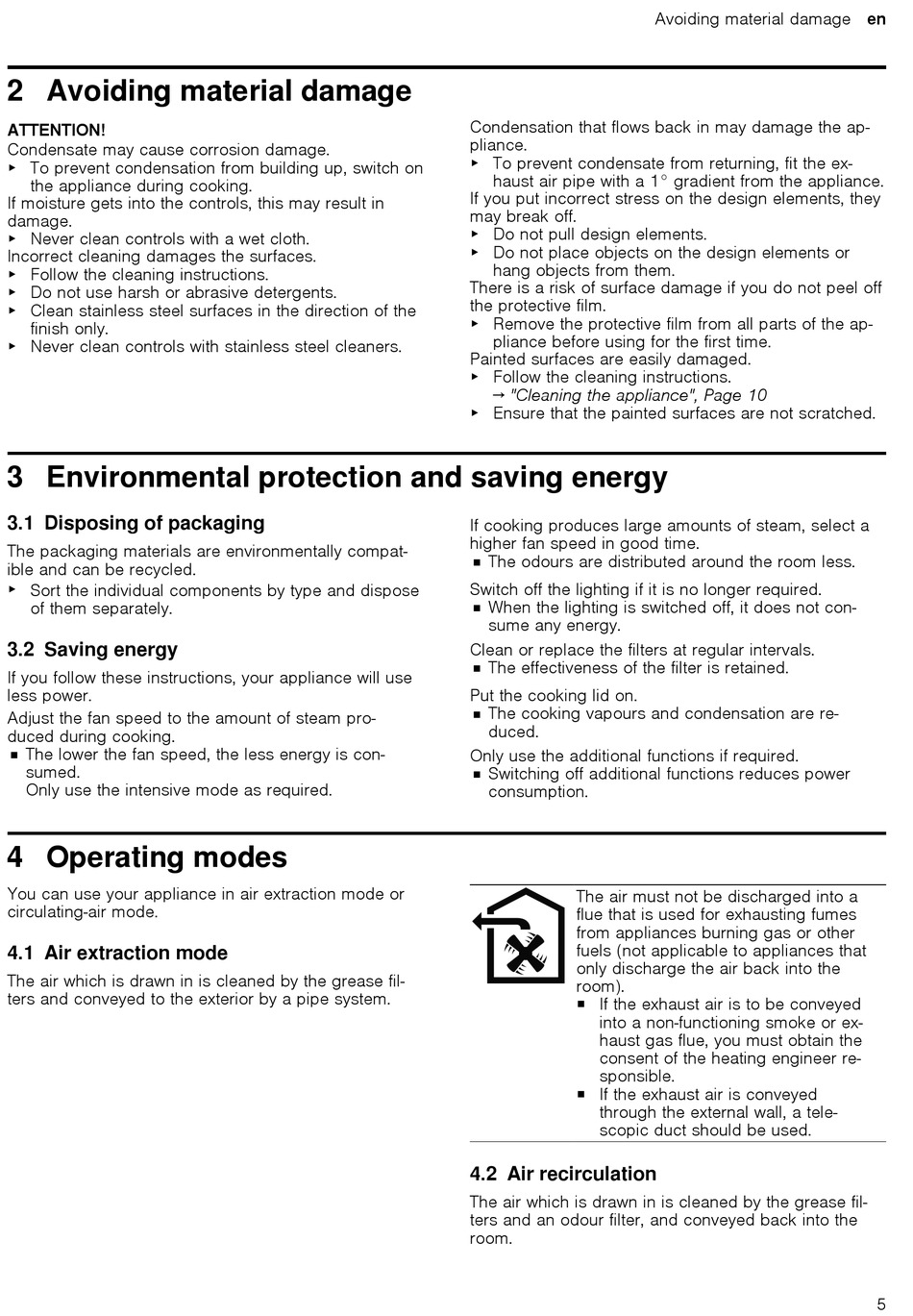 You can use your appliance in air extraction mode or