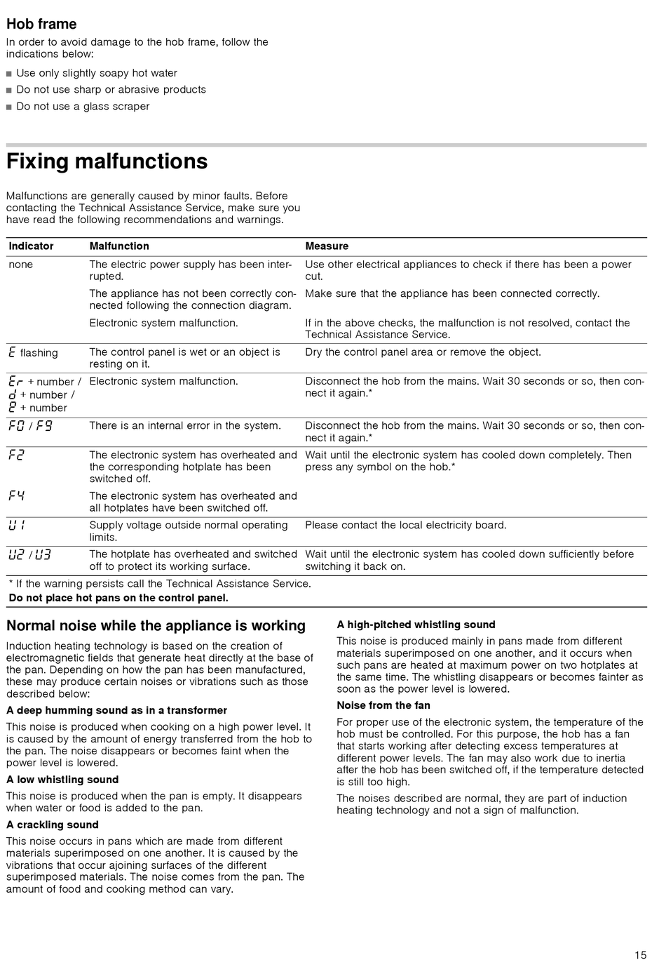 * If the warning persists call the Technical Assistance Service.