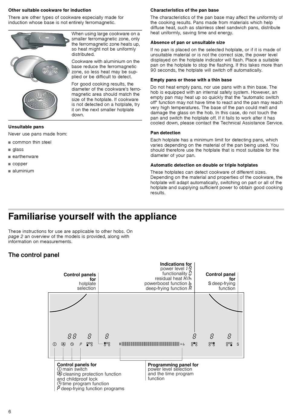 These instructions for use are applicable to other hobs. On