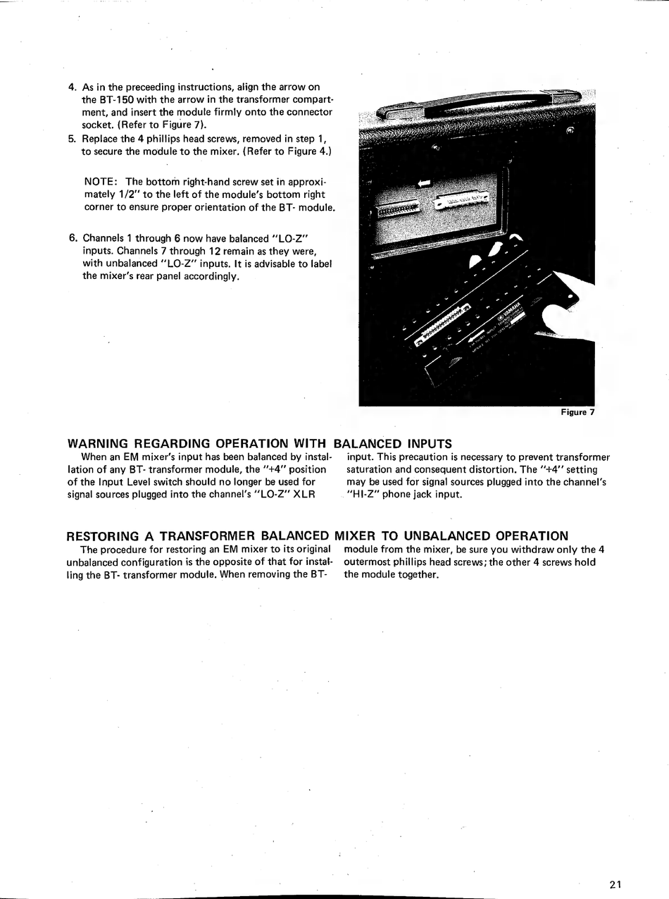with unbalanced "LO-Z"' inputs. It is advisable to label