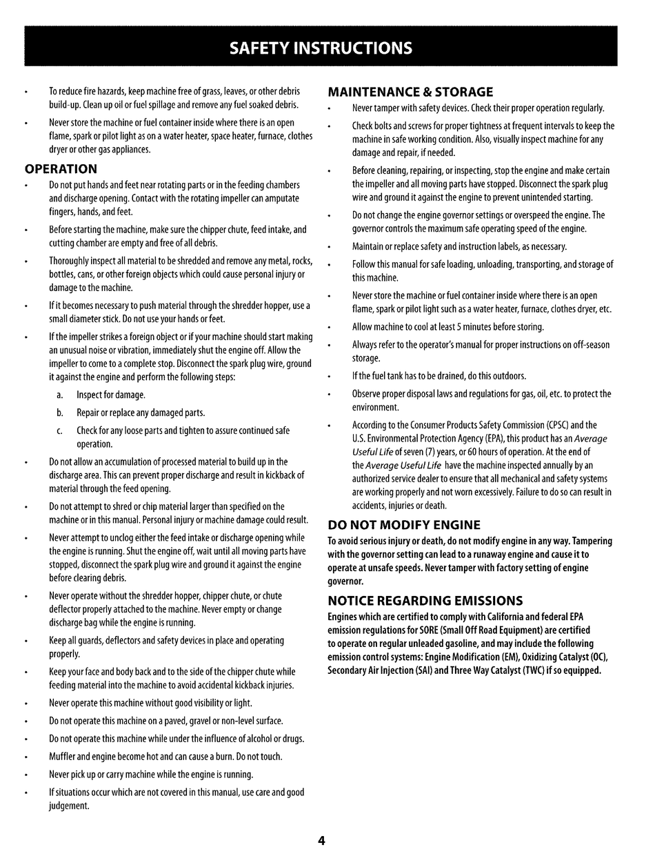 To avoid serious injury or death, do not modify engine in any way. Tampering