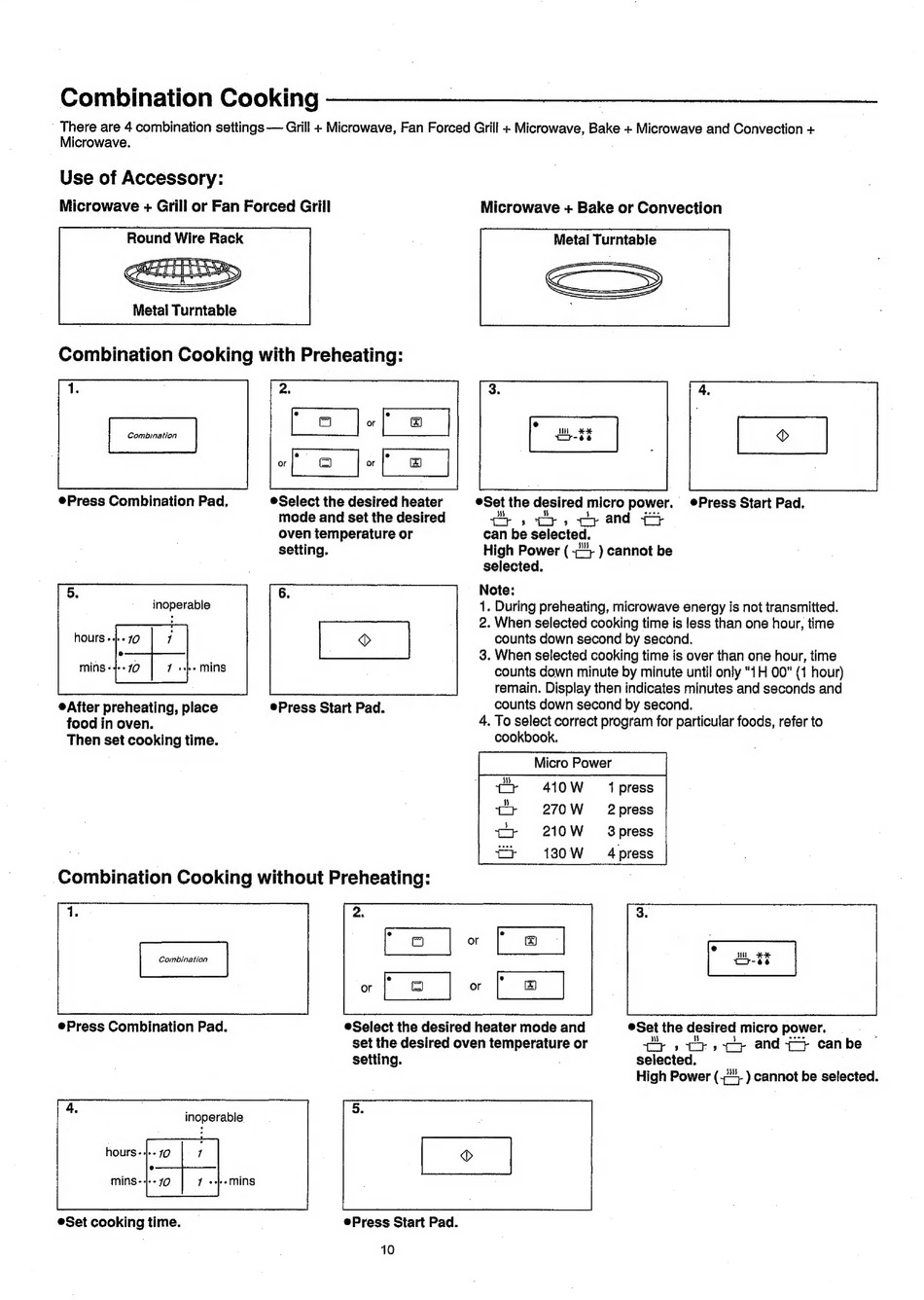 ' There are 4 combination settings — Grill + Microwave, Fan Forced Grill + Microwave, Bake + Microwave and Convection +
