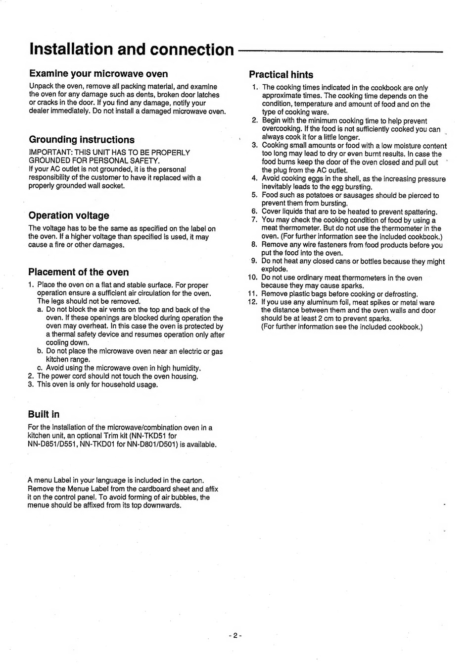 NN-D851/D551, NN-TKDO1 for NN-D801/D501) is available.