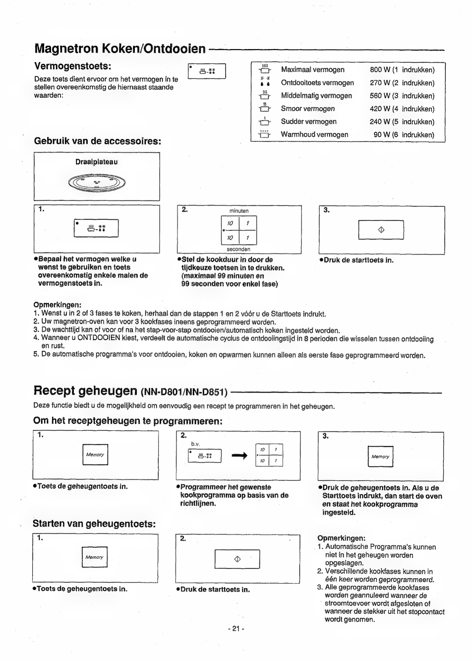 Recept geheugen (NN-D801/NN-D851)