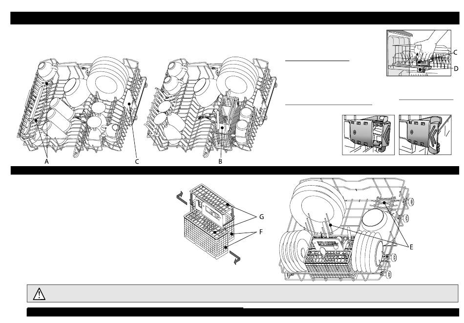Arrange crockery so that water does not collect in cavities, ensuring that the spray arms turn freely. Only use dishwasher-proof crockery and dishes. Do not use the dishwasher for washing wooden
