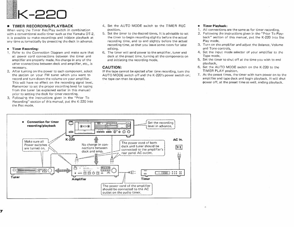 Recording" section of this manual, put the K-220 into