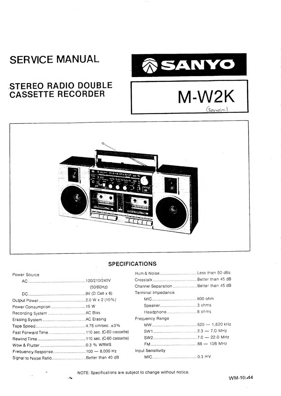 Yes, the Sanyo M-W2K has the capability to fast forward and rewind tapes. For a C-60 cassette, the fast forward time is approximately 110 seconds, and the rewind time is also approximately 110 seconds.