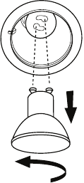 - Remove and replace it with an appropriate Energy Star lamp for the fixture: 12-volt, 6.5-watt maximum with a GU10 base. Turn it clockwise to lock it into place.