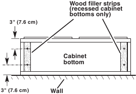 - Two 2" (5.1 cm) wide filler strips. Length and thickness determined by recess dimensions.