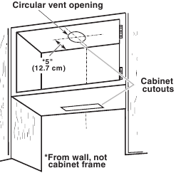 - 6" (15.2 cm) or larger round vent or a 3 1/4" x 10" (8.3 x 25.4 cm) rectangular vent through the wall