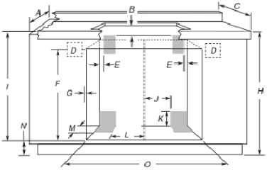 Lower shaded areas are recommended locations for flexible or rigid gas pipe installation. The gas connection on the cooktop is on the right (same location as "J" in the above diagram). The gas pipe can be installed on either side of the cutout, and either through the floor or through the wall. Refer to local codes regarding the use of gas lines.