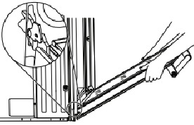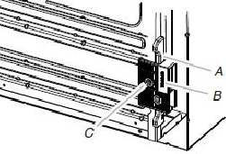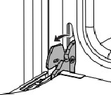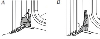 - Locate the oven door hinge locks in both corners of the oven door, and rotate the hinge locks toward the oven door to the unlocked position. If the door hinge lock is not rotated fully (see unlocked position in illustration), the door will not remove properly.