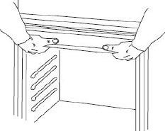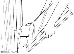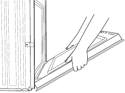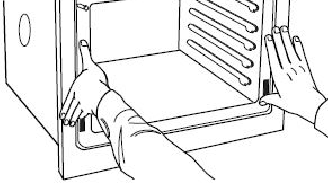 - Using 2 hands, grasp the edges of the oven door. Close the oven door slightly past the stop position to take the weight off of the door hinges, and then pull the oven door up.