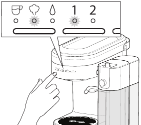 - Toggle the Mode button to select Espresso. Toggle the Dose button to select desired number of shots 1 (~ 1 ounce) or 2 (~ 2 ounces).