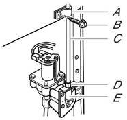 - Replace the parts for the bottom hinge as shown and tighten screws. See "Bottom Hinge" graphic. Replace the freezer door.