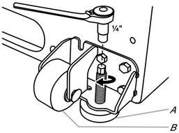 To Steady the Freezer: - Open the freezer door. Using a 1/4" hex driver, turn both brake feet clockwise the same amount until the brake feet are snug against the floor. Check again. If not satisfied, continue to adjust the brake feet by half turns of the screw until the freezer does not roll forward when the door is opened.
