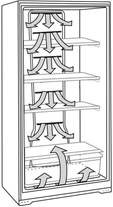 In order to ensure proper temperature, you need to permit proper airflow in the freezer. As shown in the illustration, cool air enters from the freezer wall and moves down. The air then recirculates through the vent near the bottom.