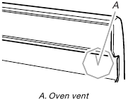 Burner ports: Check burner flames occasionally for proper size and shape as shown above. A good flame is blue in color, not yellow. Keep this area free of soil and do not allow spills, food, cleaning agents or any other material to enter the burner ports.