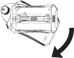 To install the battery cartridge, pull down the locking lever, and then open the battery cover. Align the tongue on the battery cartridge with the groove in the housing and slip it into place. Always insert it all the way until it locks in place with a little click.