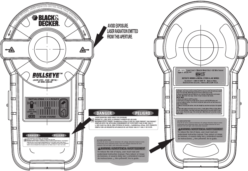 Black & Decker BDL190S - BULLSEYE Auto Leveling Laser / Wood & Metal Stud / AC Wire Sensor Manual