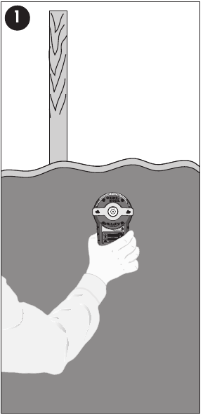 Material thickness, type of material, moisture content, and other variables can affect sensing results. The sensor may detect electric wiring or pipes in the same manner that studs are detected depending on their location to the wall surface. Use caution when drilling, nailing or cutting into walls, floors and ceilings which may contain electrical wiring or pipes. These items may be detected by the sensor in the same manner in which studs are detected. Because studs are normally spaced 16 inches (406 mm) or 24 inches (610 mm) apart and are usually 1-1/2 inches (38 mm) wide, beware of anything closer together or of a different width. Always turn off the power when working near electrical wires. ![]()