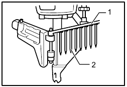 - For No. 1 method, set the change lever to the "Intermittent Nailing" position. For No. 2 method, set the change lever to the "Continuous Nailing" position. After using the change lever to change the nailing method, always make sure that the change lever is properly set to the position for the desired nailing method.