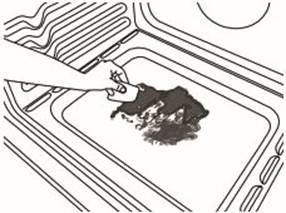 Food spills should be cleaned when oven cools. At high temperatures, foods react with porcelain. Staining, etching, pitting, or faint white spots can result.