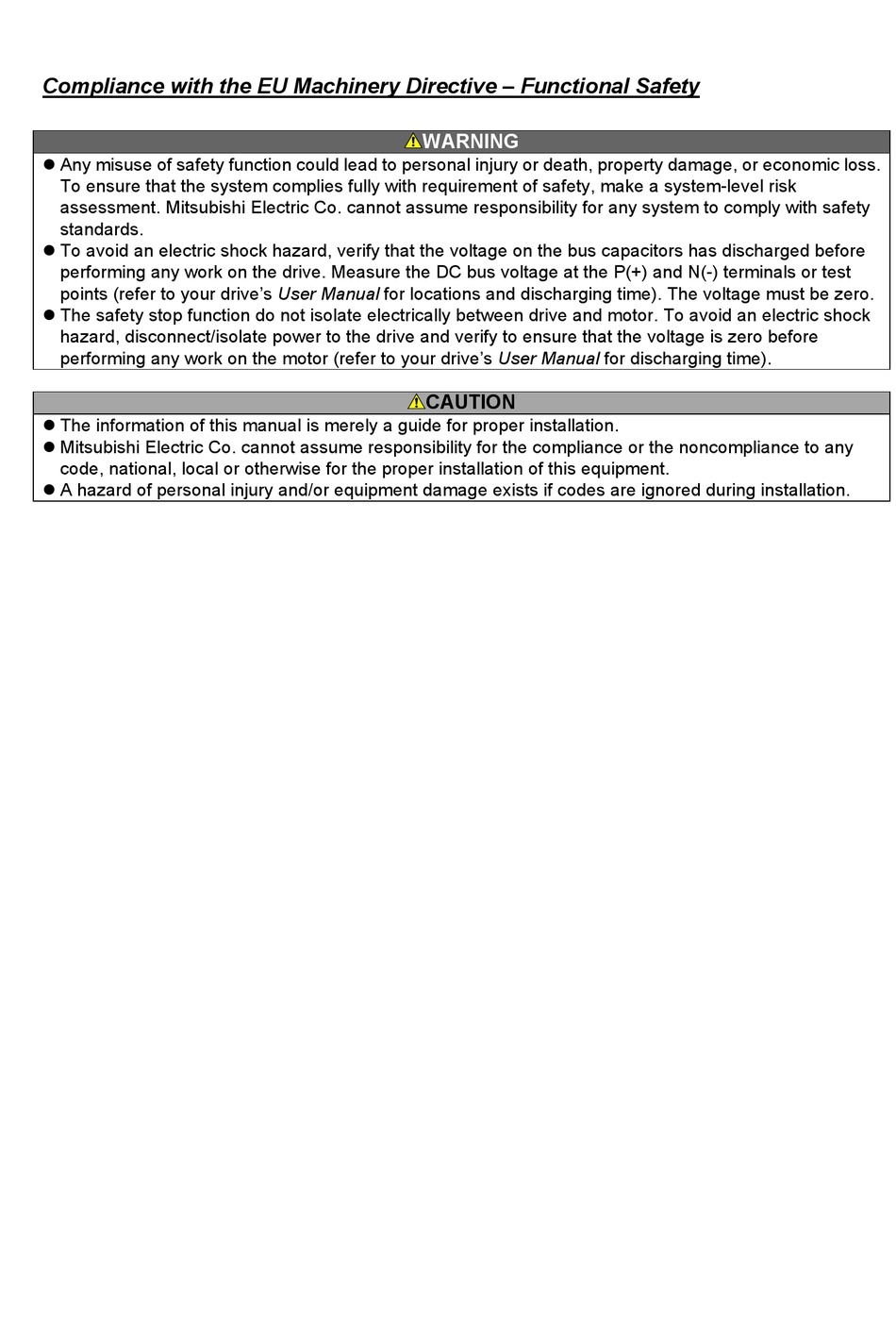 assessment. Mitsubishi Electric Co. cannot assume responsibility for any system to comply with safety