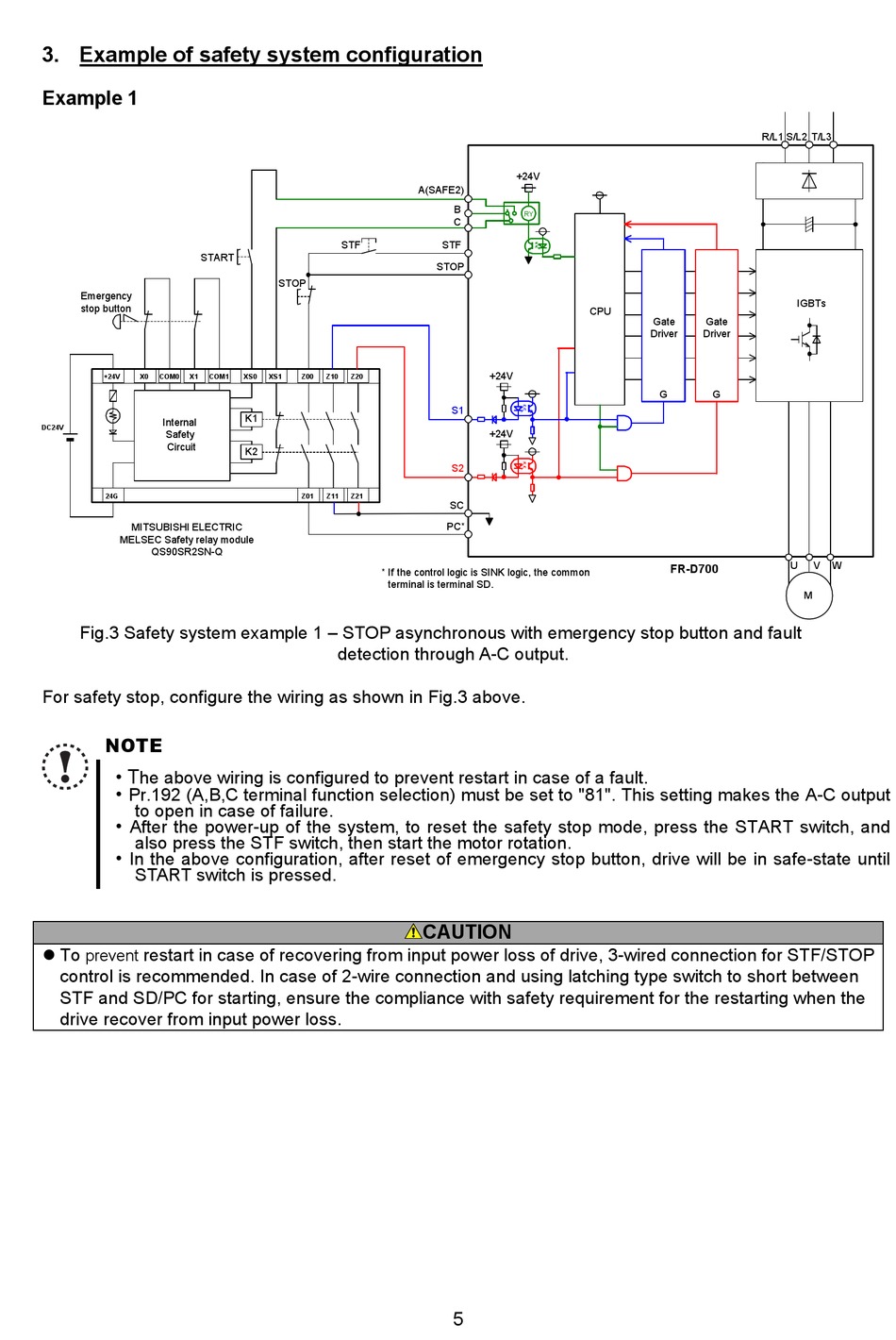 For safety stop, configure the wiring as shown in Fig.3 above.