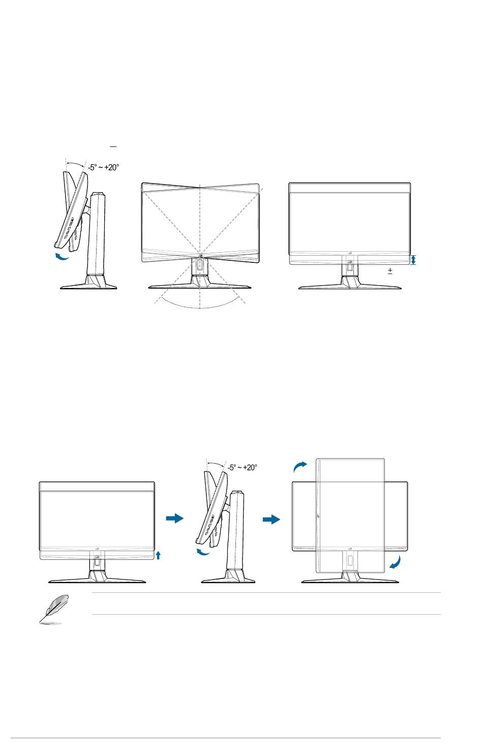 The recommended adjusting angle is +20˚ to -5˚ (for tilt)/+25˚ to -25˚ (for