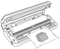 - Place the food or items to be sealed in the embossed (textured) vacuum bag, leaving at least 3 inches between contents and the top of the bag.