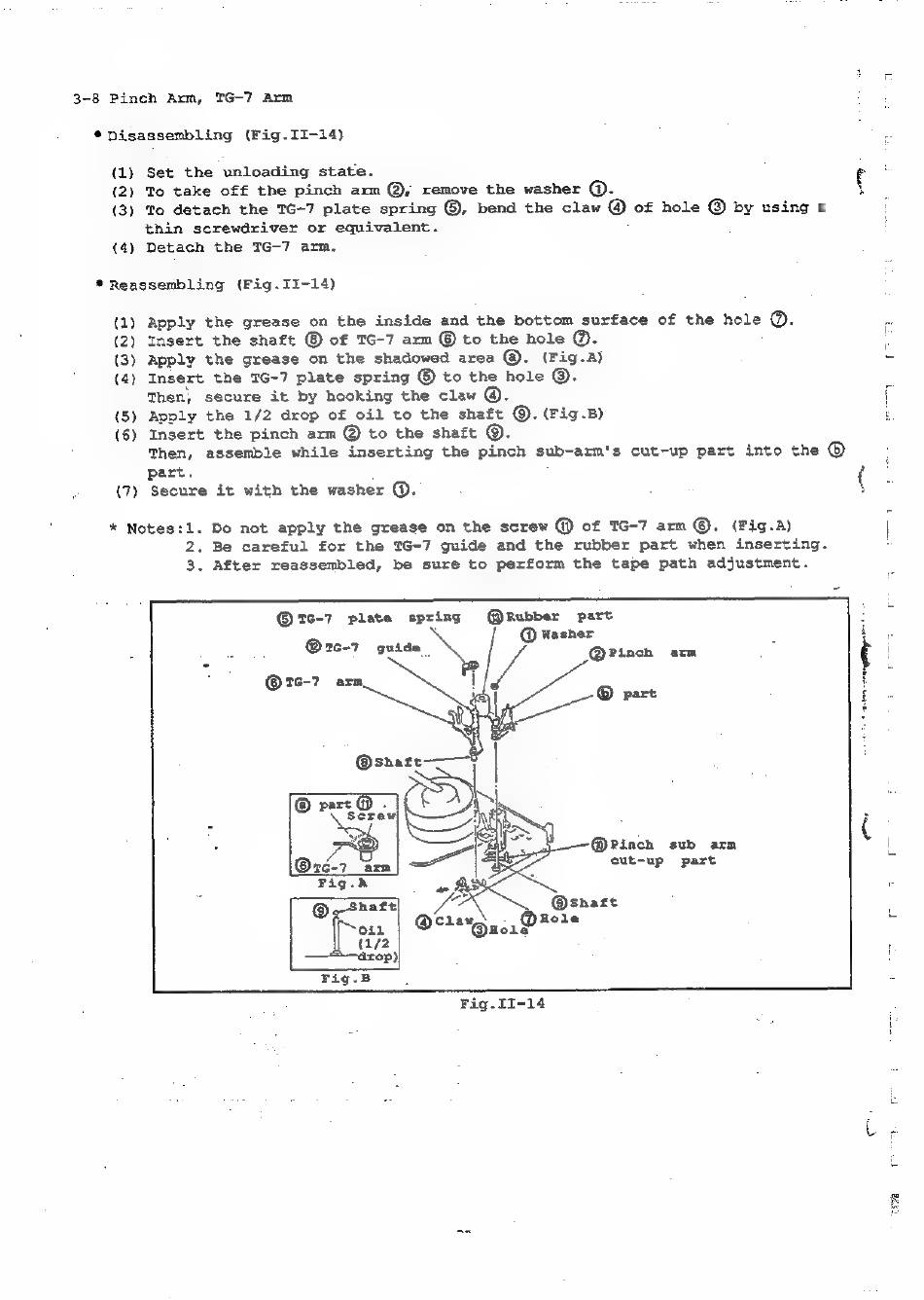 (5) Apply the 1/2 drop of oil to the shaft ©. (Fig.B)