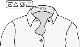 | Collar or cuff soil, cosmetics | Pretreat with prewash stain remover or rub with bar soap. |