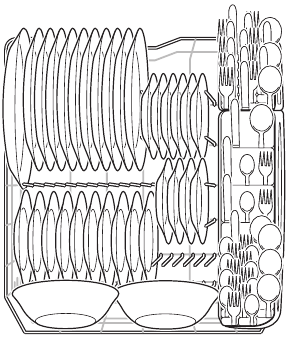 Use suggested loading patterns, as shown, to increase washability of the silverware.