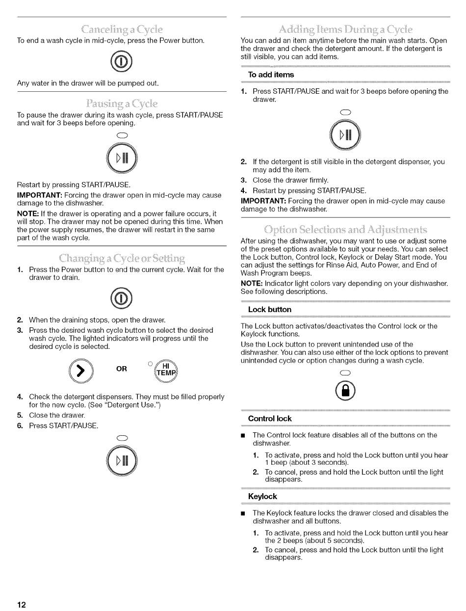 the Lock button, Control lock, Keylock or Delay Start mode. You